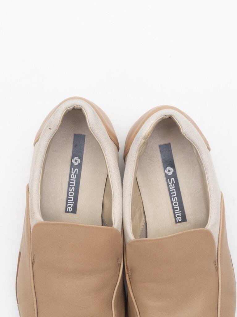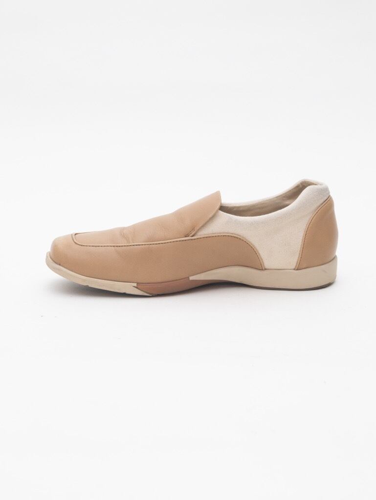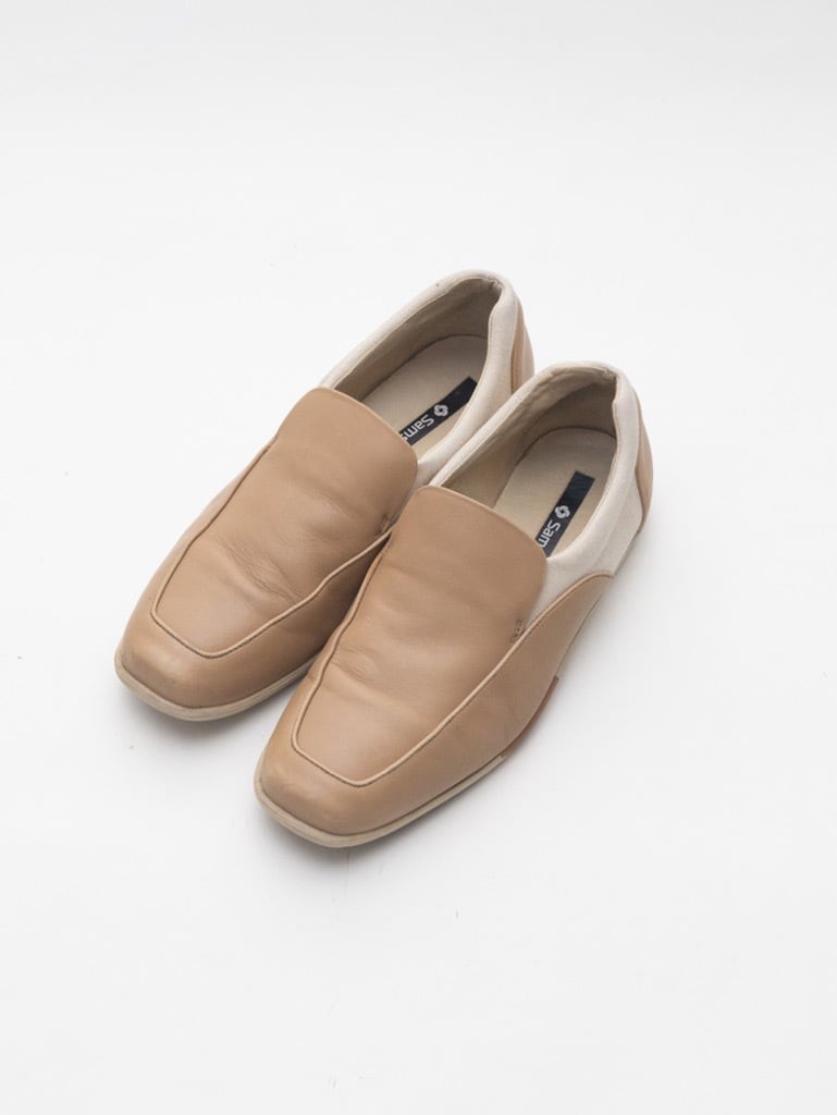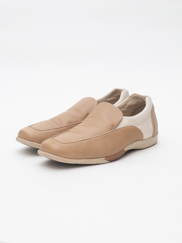 カジュアルなスリッポンタイプで、ソールはモダンなシェイプ。