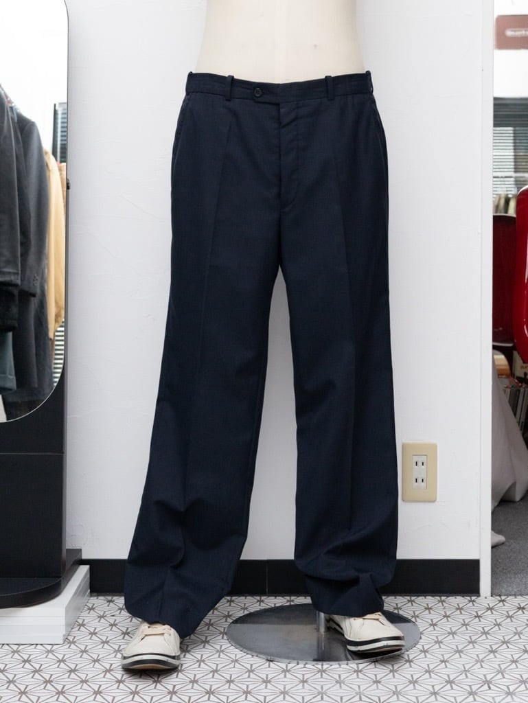 ネイビーカラーのポリウール生地は通年通して着用できる扱い生地。