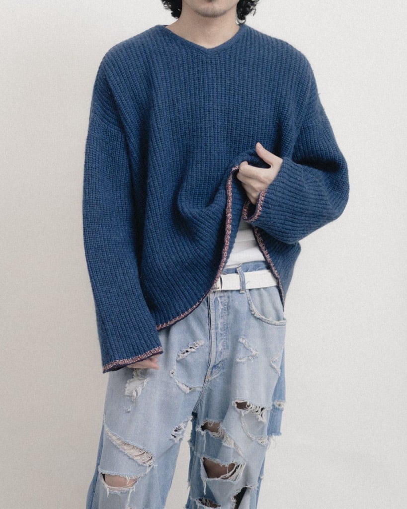 ウールをベースにアルパカやアンゴラの毛を混紡させたニットは指先で触れるだけでわかるほどのふっくらとした厚みと柔らかさ、驚くほどの軽量さを感じる。