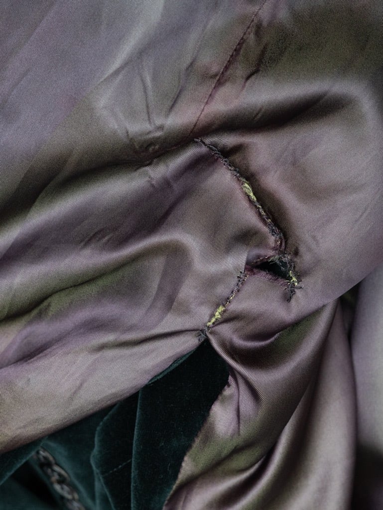コットン100%のグリーンベルベットは、深く艶やかな光沢がある。