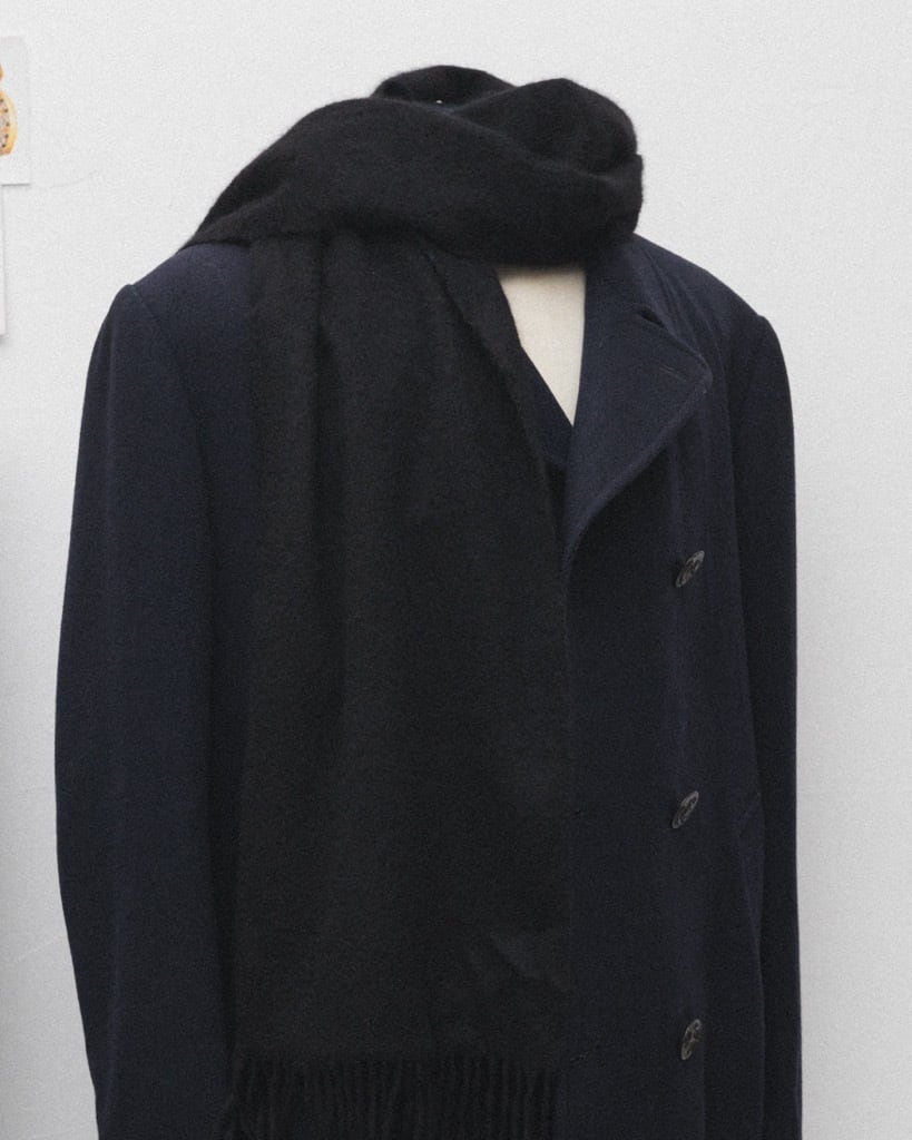 ブラックカラーのカシミヤは毛足があり滑らかでソフトなタッチ。