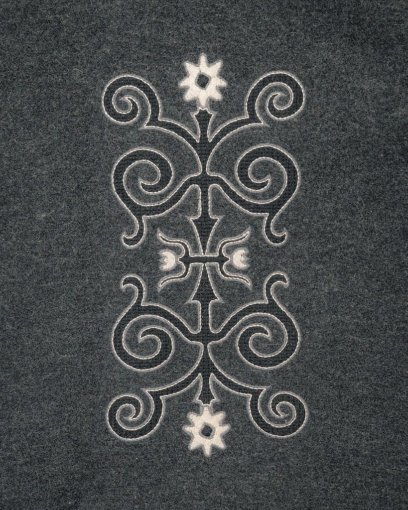 グラフィックはプリントで表現することの多いOXBOWでは珍しい、背面に刺繍が入る。