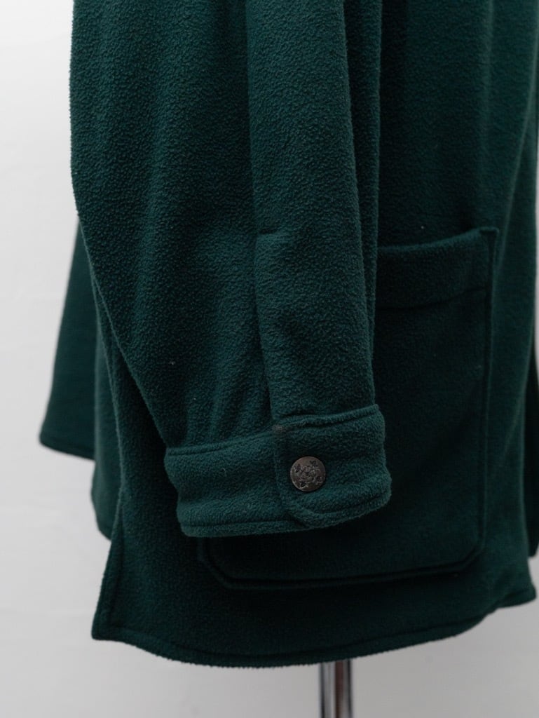ダークグリーンのフリース生地は裏地は付属せず、軽くてソフトなタッチ。