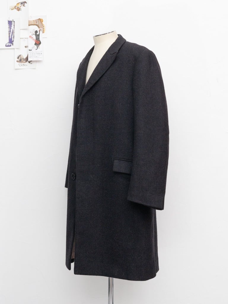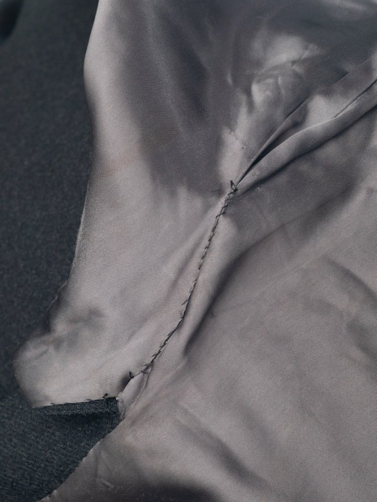 チャコールグレーでウール綾織の生地は、程よく厚みと柔さをもつ。