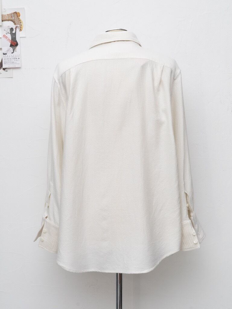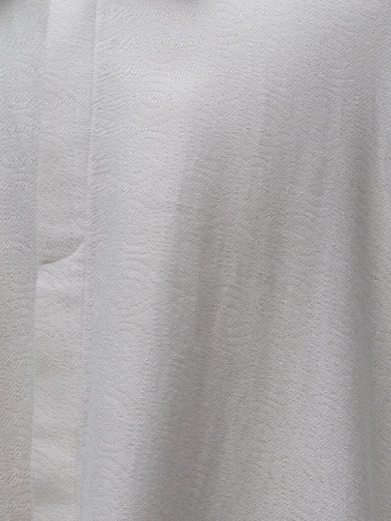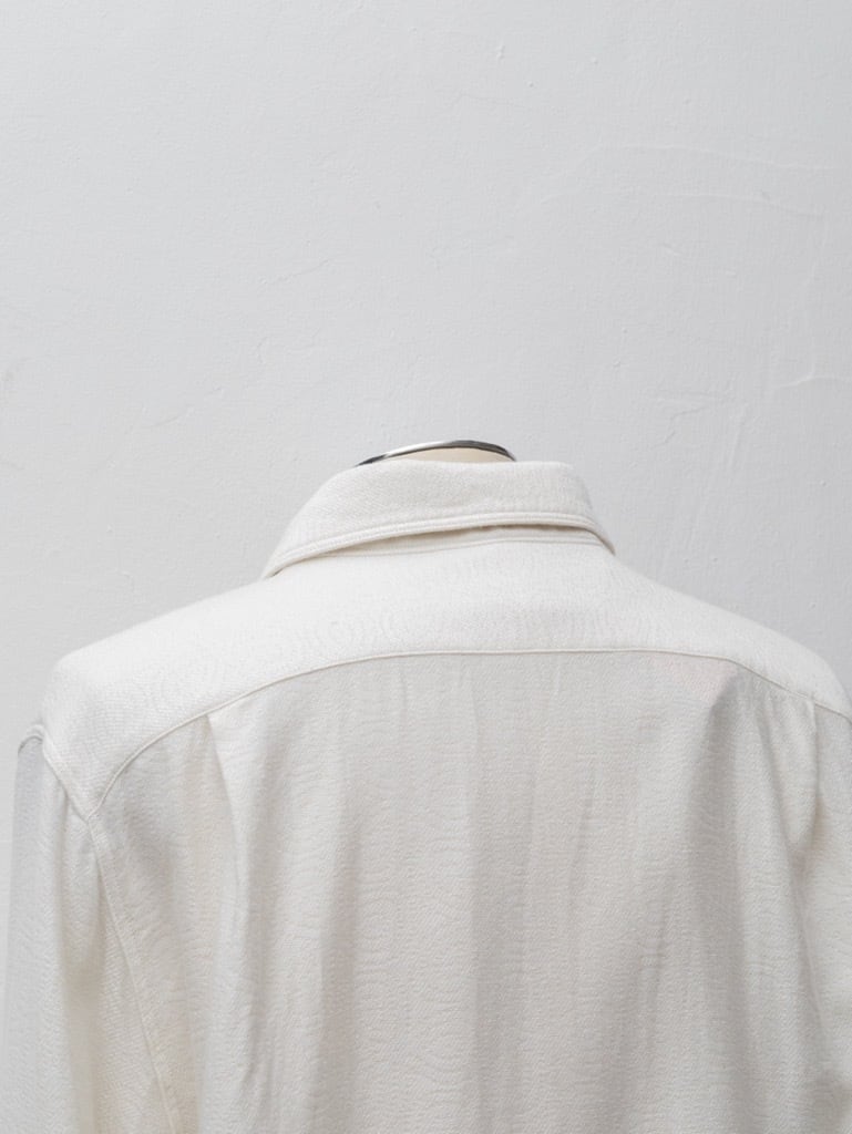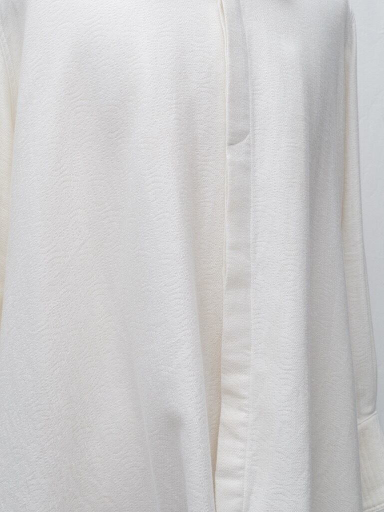 シャツの上からまるで大判のタオルを肩から掛けたようなドレープを身頃で表現。