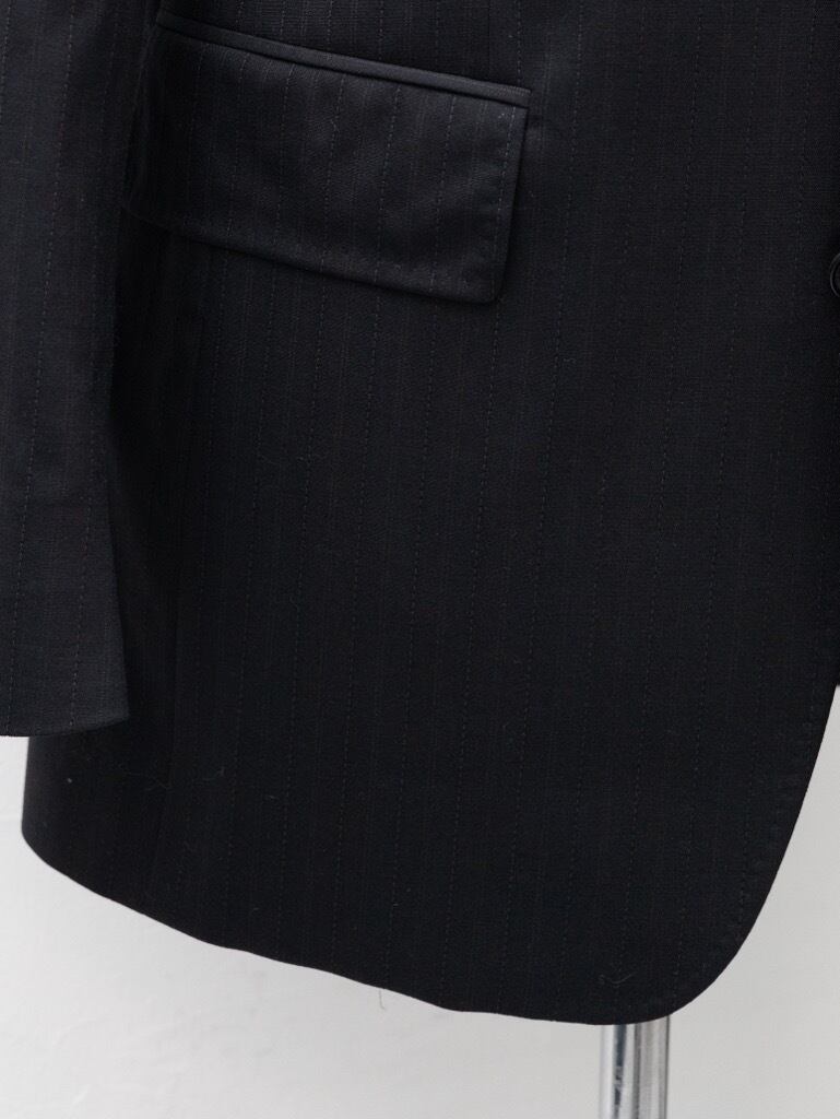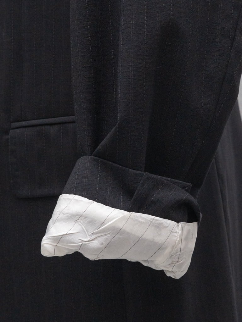 ウールにライクラ(スパンデックス)を混紡させたストライプ生地は軽さと人工的なタッチ。