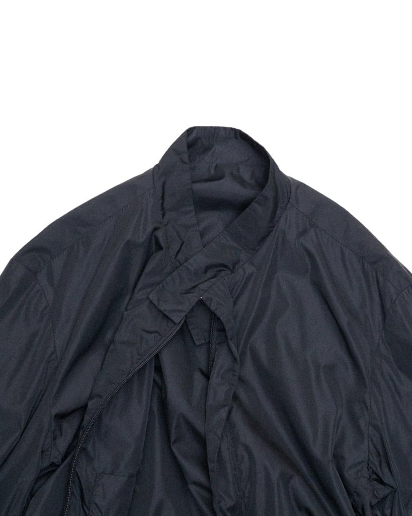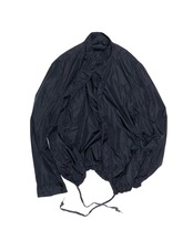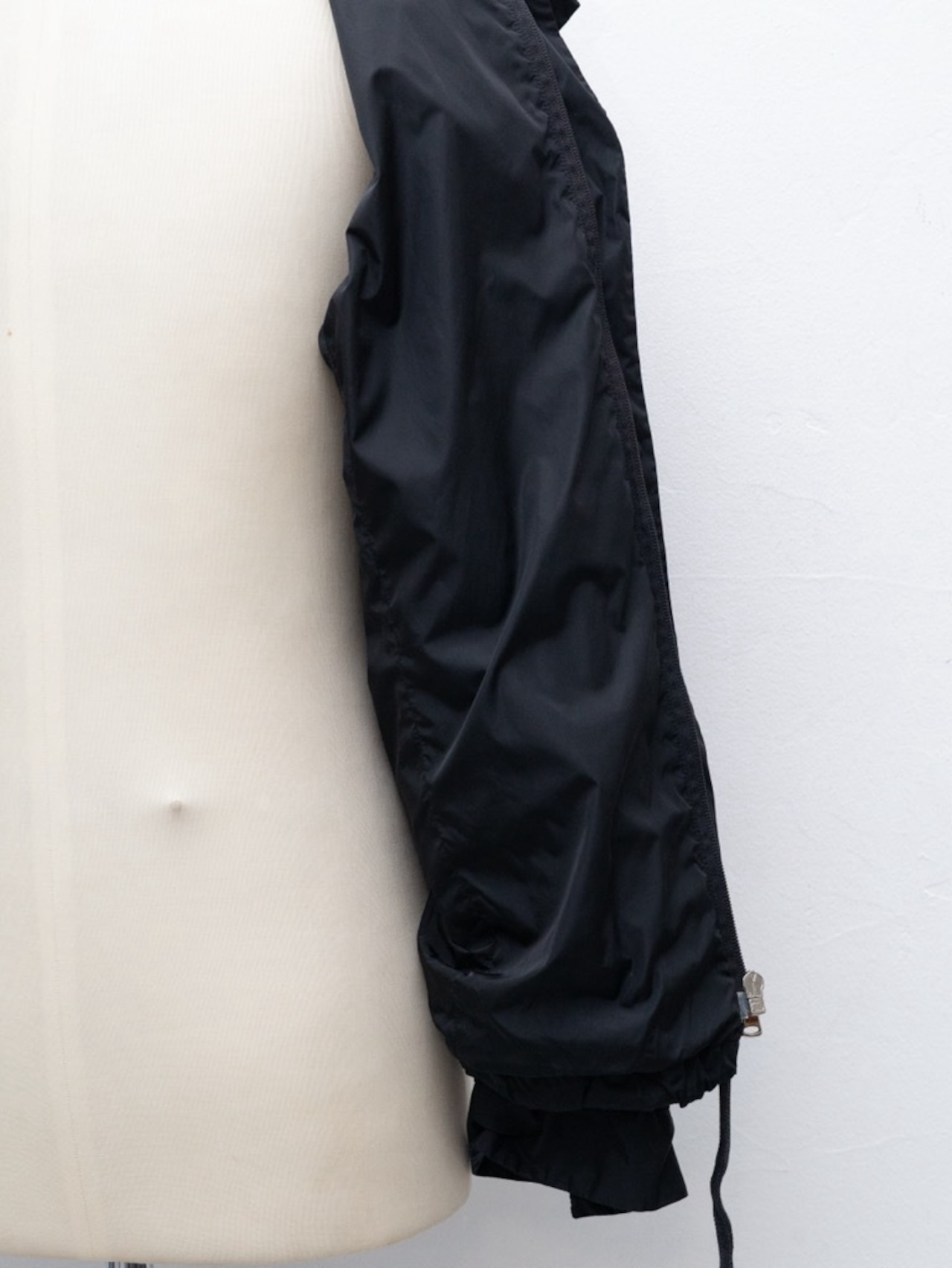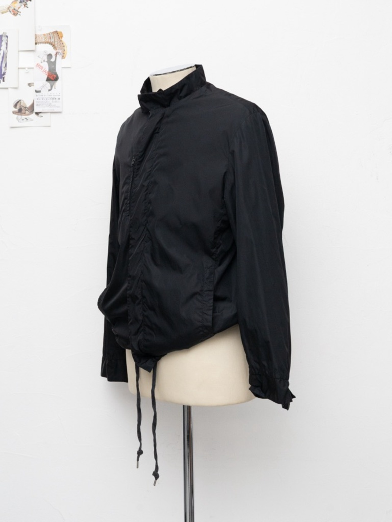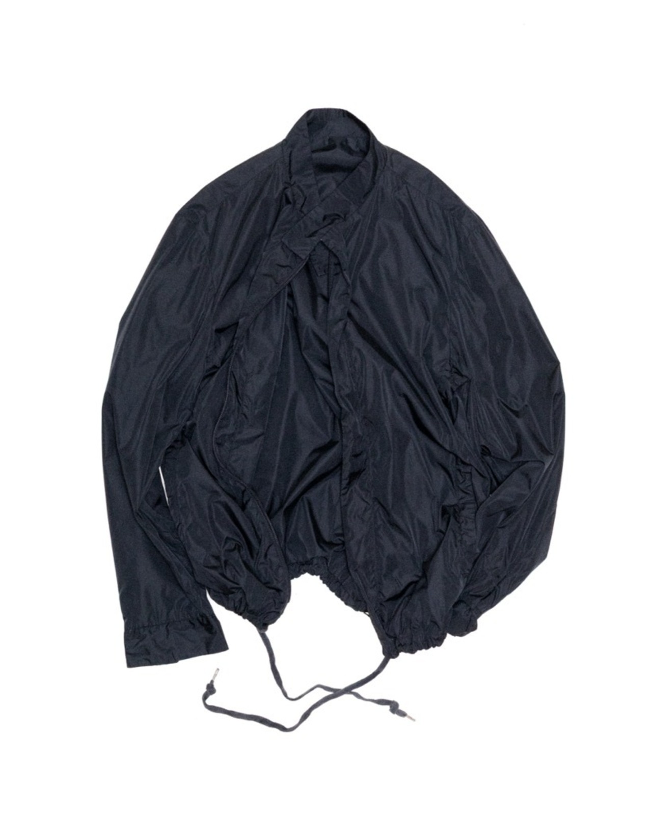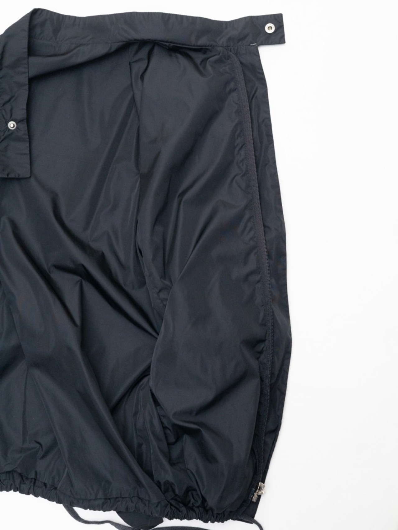 同ブランドらしくミニマルな比翼のフロントに、ポケットや裾の紐でデザインを持たせている。