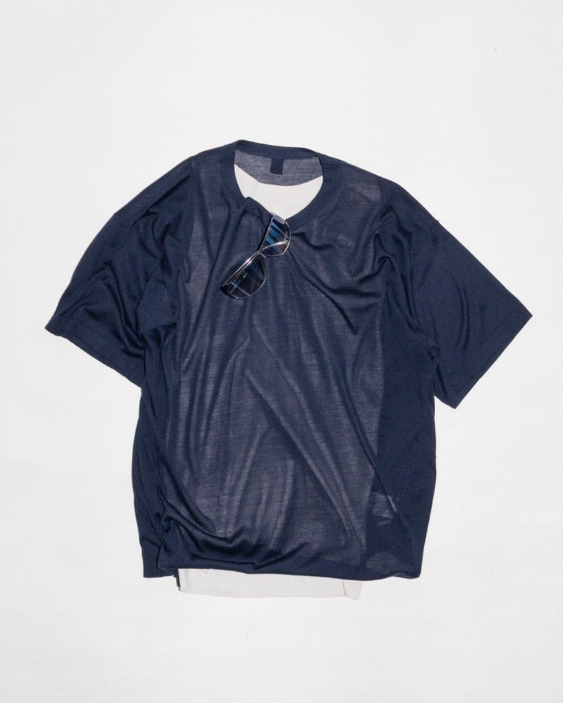 シルクを使用しているためインナーとしても最適ですが、さらに中にプリントtシャツやインナーを重ね着して中を透けさせて着用することもおすすめです。