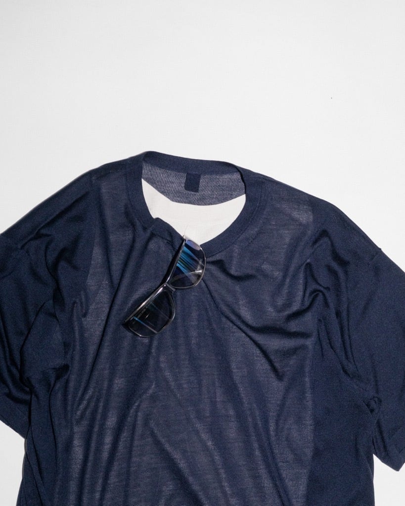 MEIASで定番の型のTシャツをシルク100%で作り上げた一着。