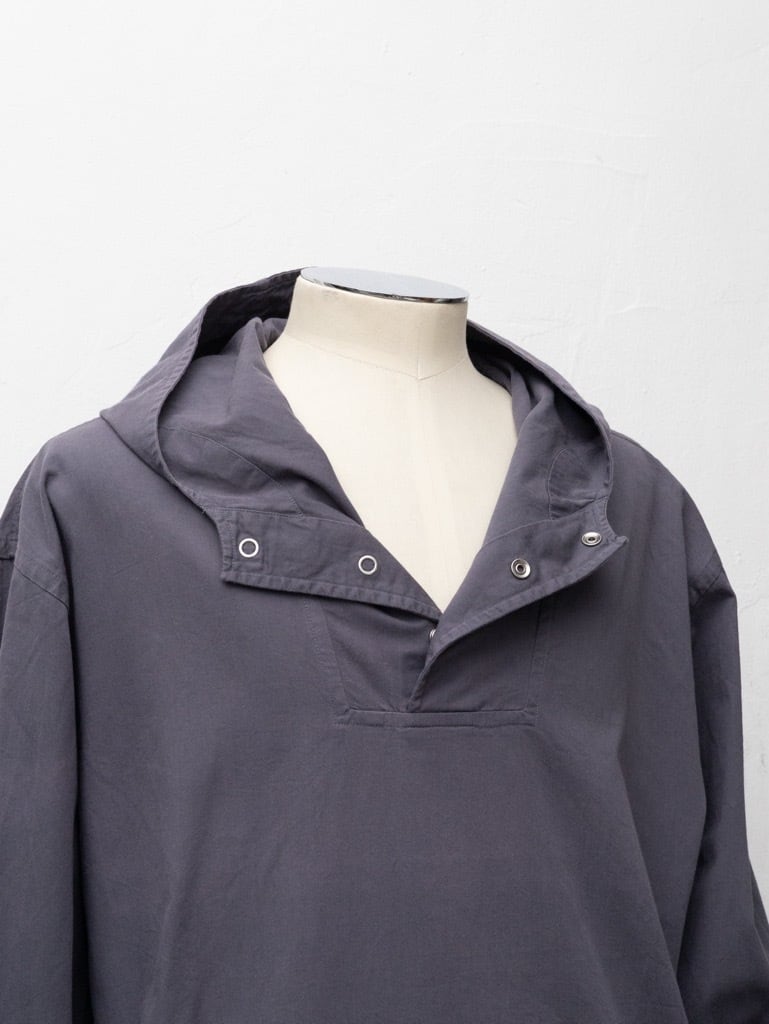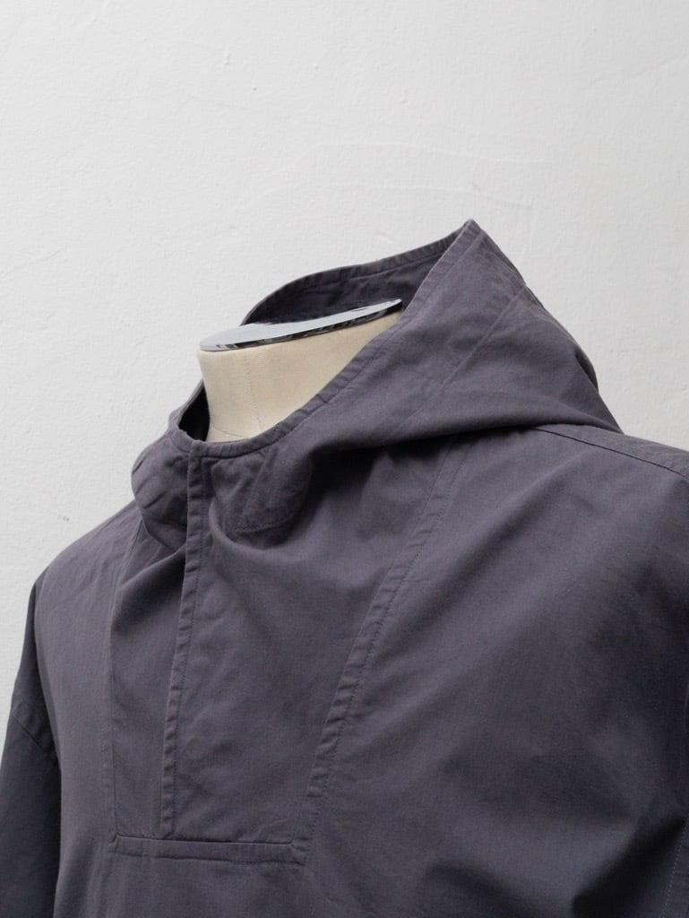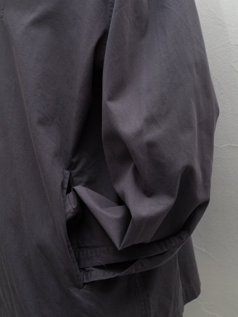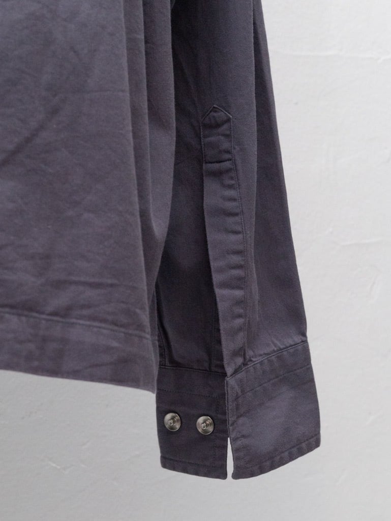 高密度のコットンツイル。チャコールグレーのボディは経年で良い色落ちが期待できる。