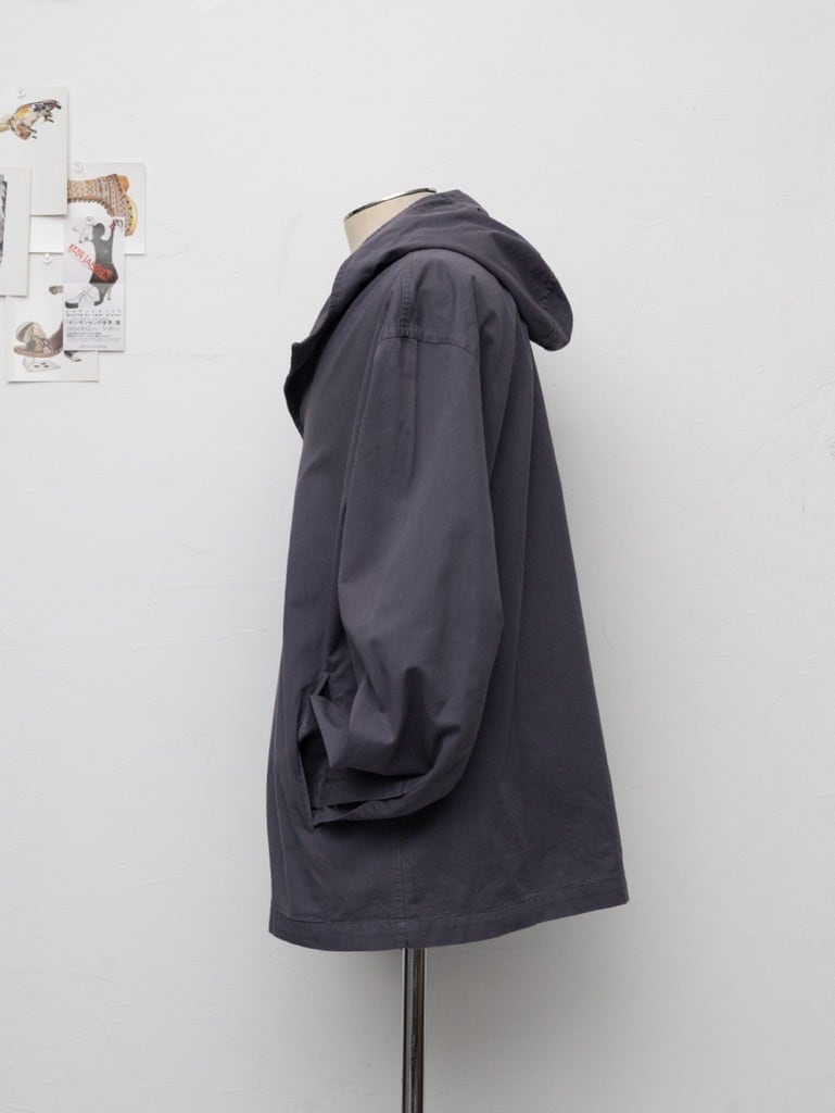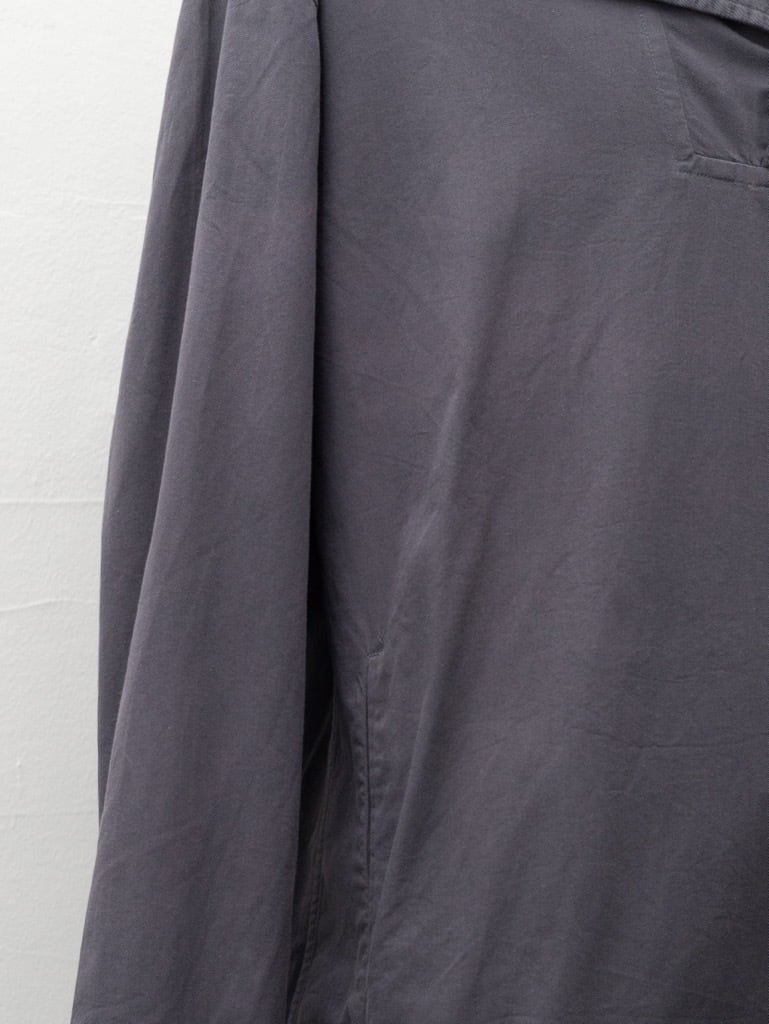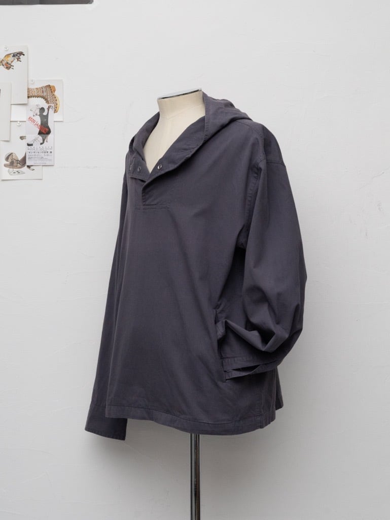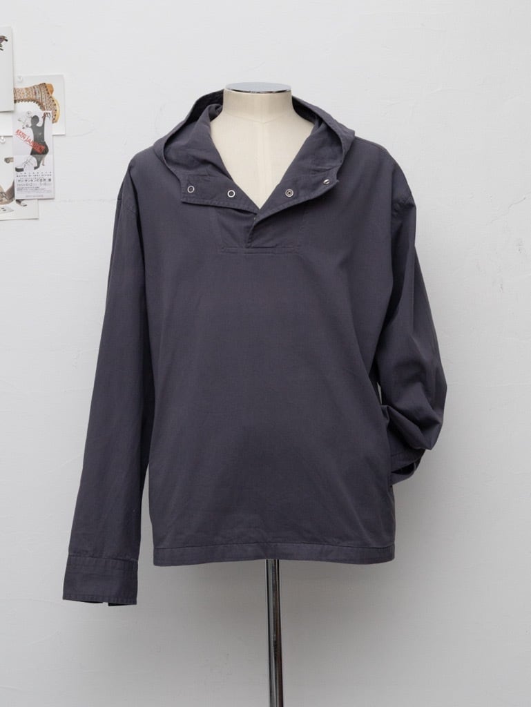 高密度のコットンツイル。チャコールグレーのボディは経年で良い色落ちが期待できる。