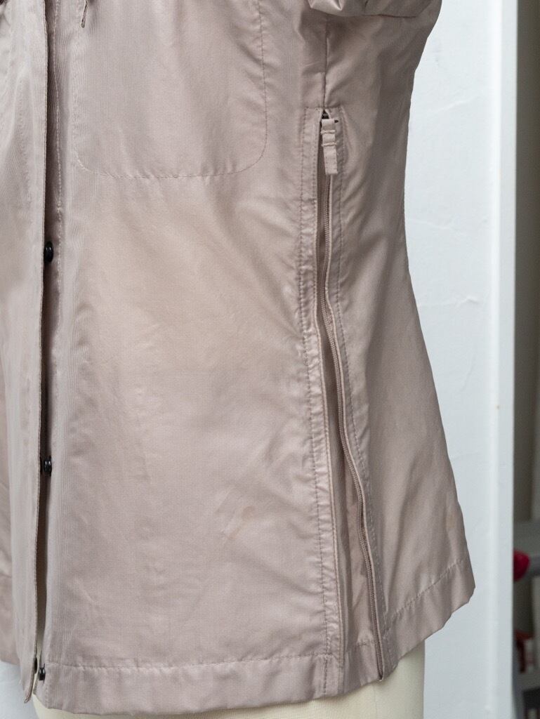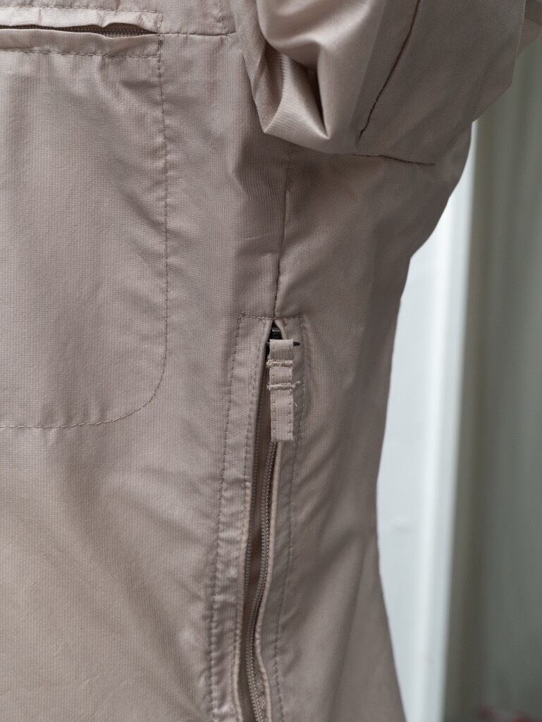サイドのジッパーを開けるとポケットを使用することができるディテール。