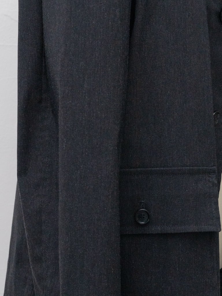 トップまで留められる5つボタンは開け閉めで雰囲気が変わる。