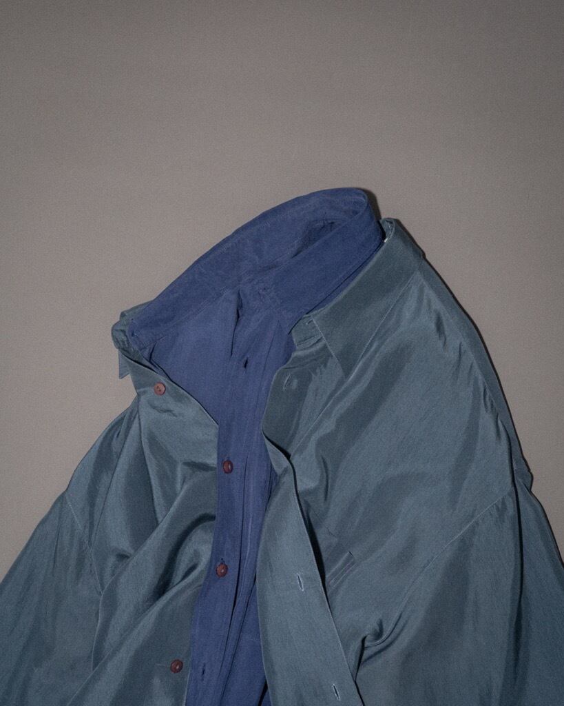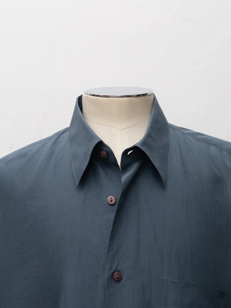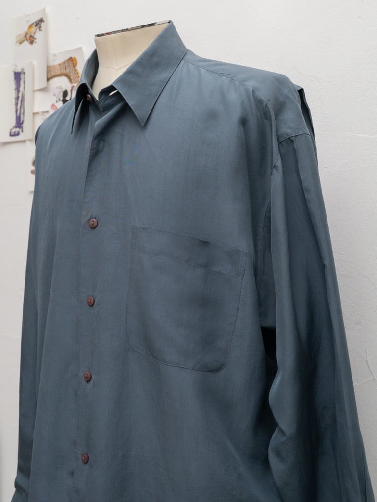 くすみのあるブルーの、柔らかな光沢のあるシルク。