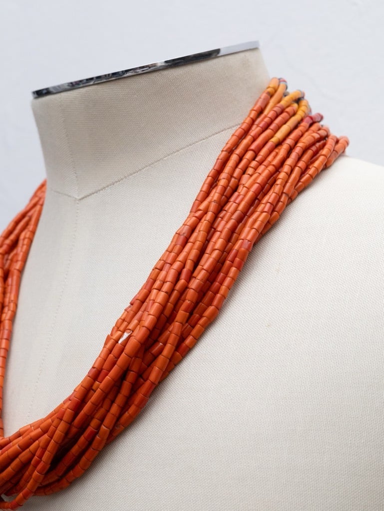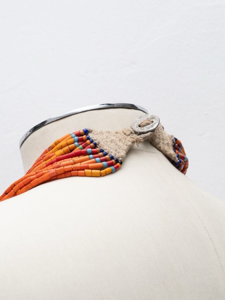 艶のあるオレンジのビーズは、ナガ族を象徴するカラー。