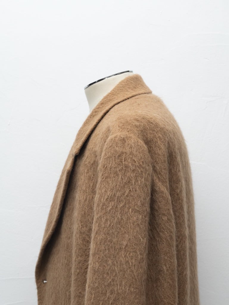 モヘヤが混ざった毛足の長いキャメルカラーのシャギー。