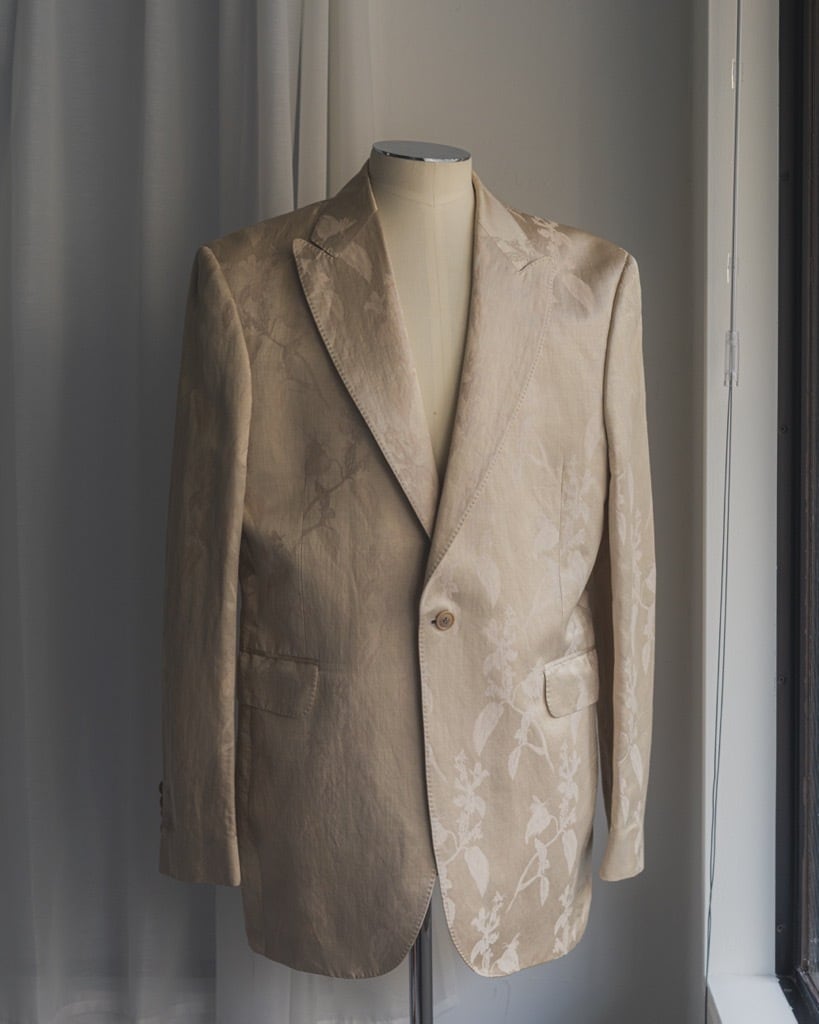 1ボタンタイプシングルブラスト。ラペルやポケットにはハンドステッチ。