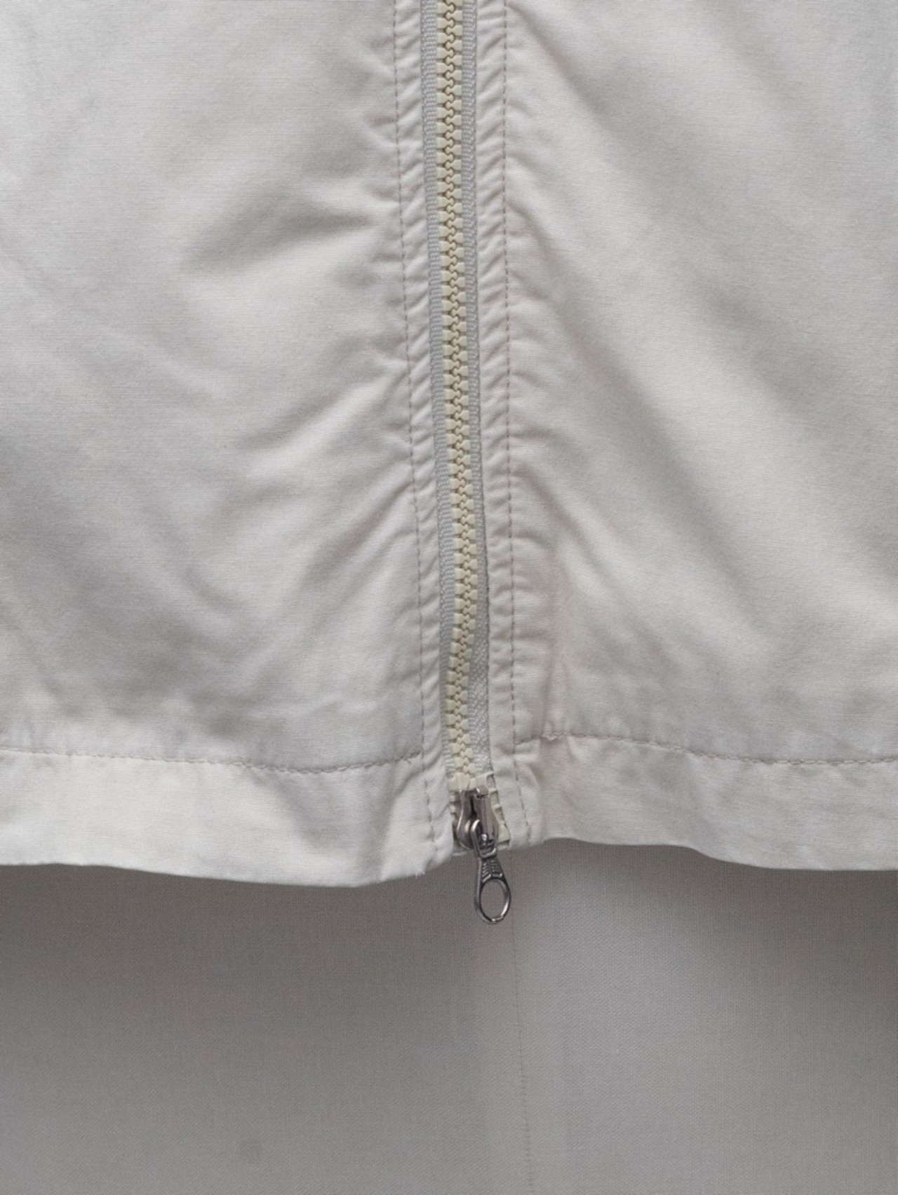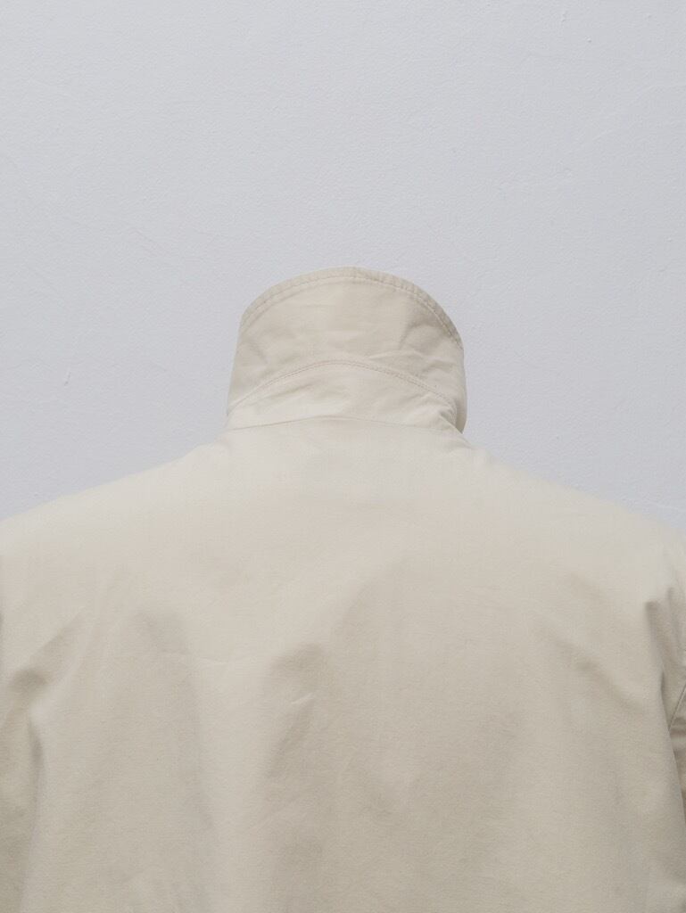 ハリのあるエクリュカラーのコットン、裏地はホワイトのメッシュ。